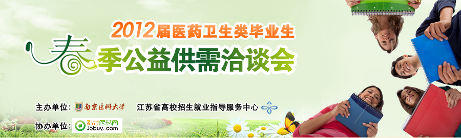 尊敬的用人單位: 為促進(jìn)我省醫(yī)藥衛(wèi)生類畢業(yè)生充分就業(yè),江蘇省高校招生就業(yè)指導(dǎo)服務(wù)中心、南京醫(yī)科大學(xué)定于2012年4月21日共同舉辦“江蘇省2012屆醫(yī)藥衛(wèi)生類畢業(yè)生暨南京醫(yī)科大學(xué)春季公益供需洽談會(huì),現(xiàn)將有關(guān)事項(xiàng)函告如下: |