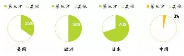 對比:美、歐、日的醫學檢測領域,第三方占比均在1/3以上,遠高于國內。