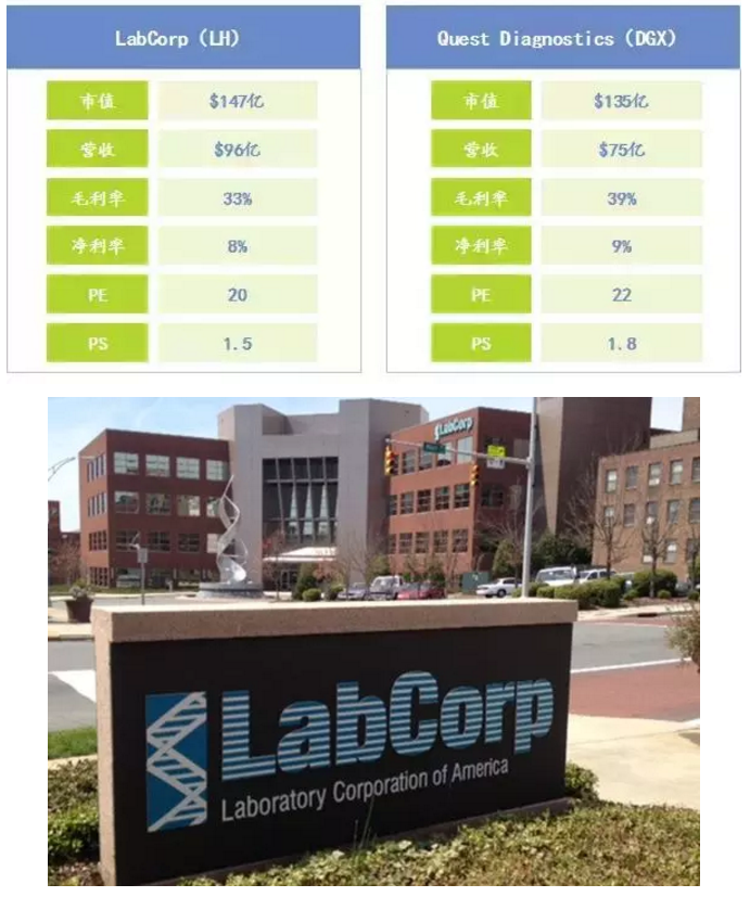 LabCorp、Quest依次是1991年、1996年納斯達克上市,業績長期穩步發展,目前兩家合計占據美國70%的第三方檢測市場,市值也逐漸從$幾億成長到$百億。