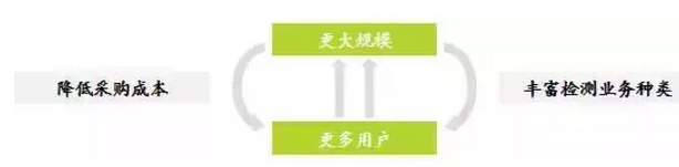 具備規模效應:規模化可以壓低采購成本+豐富檢測業務種類,從而吸引更多的用戶。