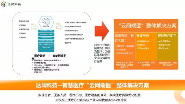 達(dá)闥科技是全球首家云端智能機(jī)器人運(yùn)營(yíng)商,專注于實(shí)現(xiàn)云端智能機(jī)器人運(yùn)營(yíng)級(jí)別的安全云計(jì)算網(wǎng)絡(luò),大型混合人工智能機(jī)器學(xué)習(xí)平臺(tái),以及安全智能終端和機(jī)器人控制器技術(shù)研究,以實(shí)現(xiàn)患者、醫(yī)務(wù)人員、醫(yī)療機(jī)構(gòu)、醫(yī)療設(shè)備的互動(dòng),實(shí)現(xiàn)醫(yī)療資源優(yōu)化配置,加快推進(jìn)醫(yī)療行業(yè)由傳統(tǒng)產(chǎn)業(yè)向現(xiàn)代化服務(wù)業(yè)轉(zhuǎn)型升級(jí)。