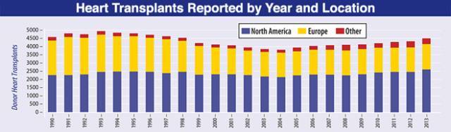 心臟移植手術主要集中在美國和歐洲