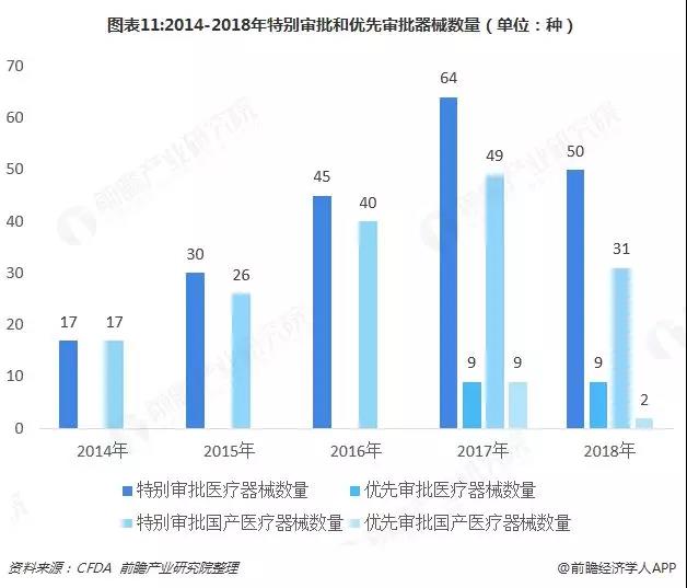 2018年,國(guó)家器械審評(píng)中心共發(fā)布了14期《創(chuàng)新醫(yī)療器械特別審批名單》,共有50種創(chuàng)新醫(yī)療器械獲批通過(guò),其中國(guó)產(chǎn)醫(yī)療器械有31種,占比高達(dá)62%!同時(shí)發(fā)布了7批《創(chuàng)新醫(yī)療器械優(yōu)先審批名單》,共有9種創(chuàng)新醫(yī)療器械獲批通過(guò),其中國(guó)產(chǎn)醫(yī)療器械2種,占比為22%。