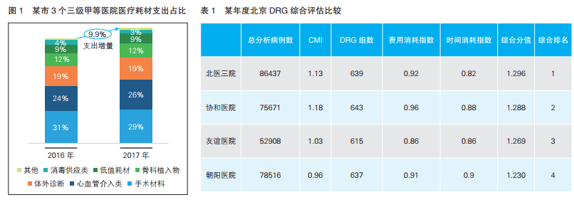 DRG的實(shí)施使藥品和醫(yī)療器械耗材從醫(yī)院的利潤(rùn)中心轉(zhuǎn)變?yōu)槌杀局行模瑥氖杖雭?lái)源轉(zhuǎn)變?yōu)榭刭M(fèi)目標(biāo)。據(jù)相關(guān)研究表明,醫(yī)療耗材支出的增長(zhǎng)幅度高于醫(yī)院收入的增長(zhǎng),這將導(dǎo)致醫(yī)院對(duì)耗材的控費(fèi)更為緊迫。以圖1為例,可收費(fèi)的醫(yī)療耗材的支出,如心血管介入類(lèi)等占比一直在增加,而不可收費(fèi)的醫(yī)療耗材,如部分手術(shù)材料、消毒供應(yīng)類(lèi)耗材的采購(gòu)金額占比則呈明顯下降趨勢(shì)。