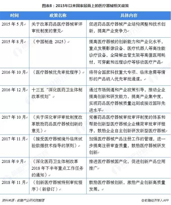 政府在推動醫療器械國產化方面,推出了一系列切實有效的政策和措施。除了上述國產優秀設備遴選工作,2018年11月,新版《創新醫療器械特別審批程序》完善了適用情形、細化了申請流程、提升了創新審查的實效性、完善了審查方式和通知形式,并明確對創新醫療器械的許可事項變更優先辦理,使得程序設置更為科學有效,有利于提升創新醫療器械審查效率,為鼓勵醫療器械產業創新發展發揮積極作用。