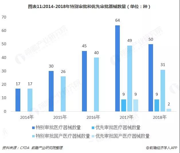 2018年,國家器械審評中心共發布了14期《創新醫療器械特別審批名單》,共有50種創新醫療器械獲批通過,其中國產醫療器械有31種,占比高達62%!同時發布了7批《創新醫療器械優先審批名單》,共有9種創新醫療器械獲批通過,其中國產醫療器械2種,占比為22%。