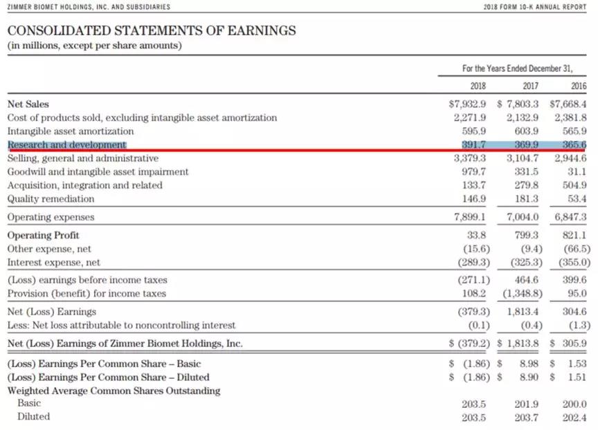 其他制造商也看到了商機緊隨其后,Globus Medical于2017年通過其Excelsius GPS平臺進入脊柱機器人市場。Zimmer Biomet在2016年以不低于13.2億美元的價格收購了法國手術機器人公司Medtech,擁有了Rosa Brain和Rosa Spine機器人輔助手術平臺的所有權。在2019年第一季度,Zimmer Biomet獲得FDA批準用于膝關節手術應用的Rosa平臺和Rosa One Spine平臺,并宣布計劃在2019年中期將Rosa Knee正式進入膝關節市場。這一舉措使得Zimmer Biomet成為第一個在手術機器人市場上獲得腦、脊柱、膝關節FDA批準的公司。ZimmerBiomet 2018年報顯示,除美國之外,公司還在加拿大,中國,法國,瑞士等多個國家和地區有約2000名研發人員,18年凈銷售額為79.329億美元,R&D投入約為3.917億美元,研發強度約為4.9%[4]。在2018年報中,Zimmer 明確表示“2018年凈銷售額與2017年相比增長了1.7%,主要是由于產品供應的改善和Rosa Knee關鍵研發項目的完成”。